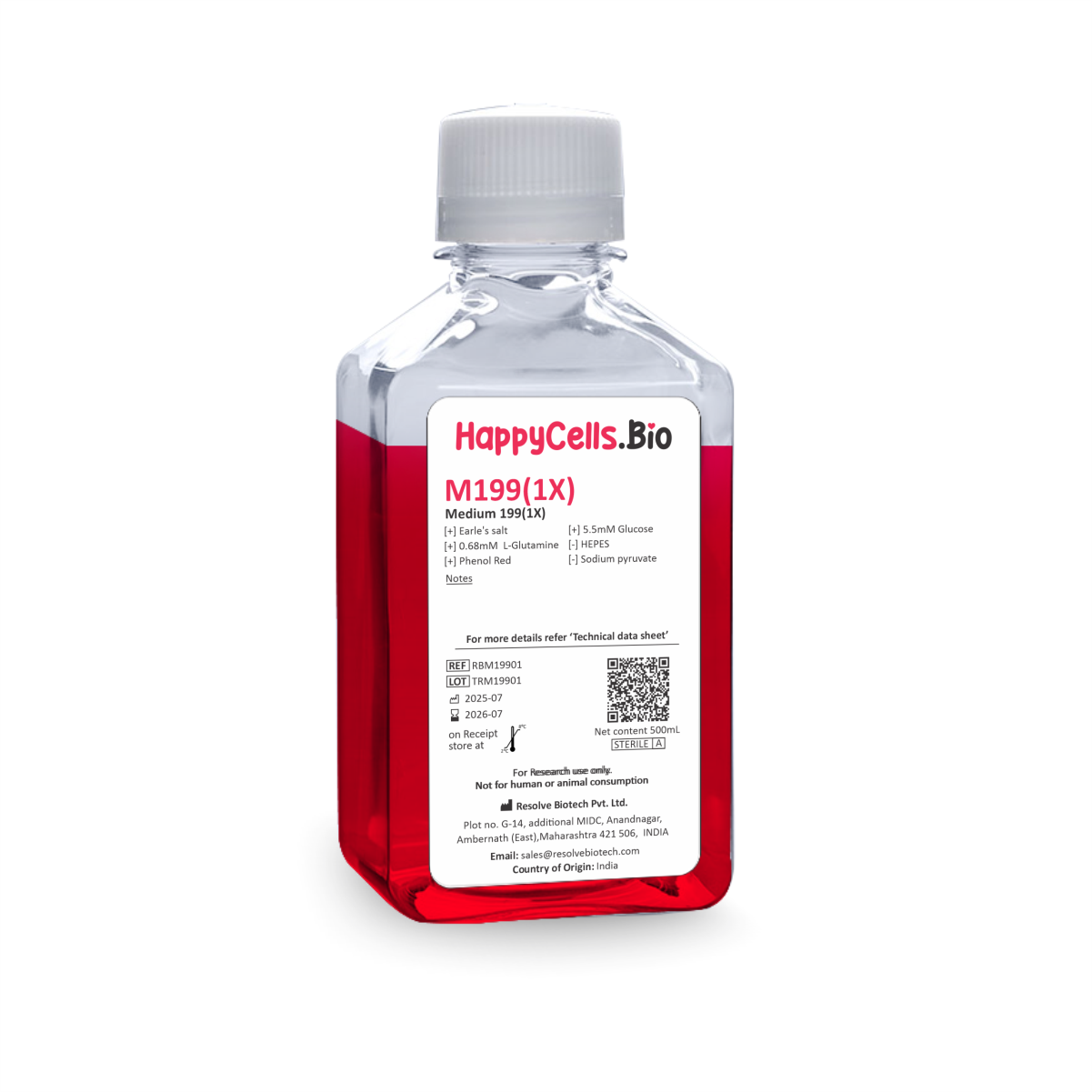 HappyCells Bio provides GMP-grade, ISO 13485–certified cell culture media and buffers for research and biopharma. Products include PBS/DPBS, MEM, DMEM, DMEM/F-12, RPMI 1640 and M199, manufactured in ISO-7 cleanrooms with sterile filtration and rigorous in-house QC for pH, osmolality, sterility, endotoxin and mycoplasma. Each lot ships with a Certificate of Analysis (COA) and custom formulations are available for pH, osmolality and ions (e.g., Ca²⁺/Mg²⁺). HappyCells Bio is part of Resolve Biotech Private Limited (Mumbai, India). For interviews, quotes and high-resolution images, contact sales@resolvebiotech.com.